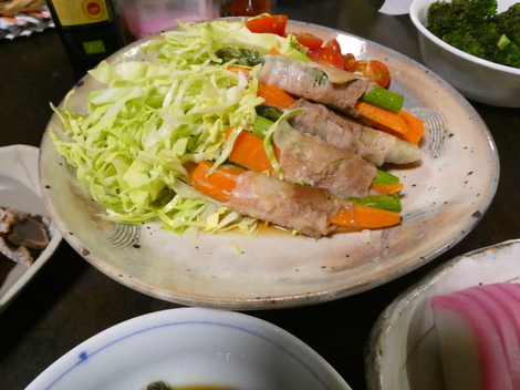 今夜は妻が、オリーブオイルでニンジンとアスパラガスの