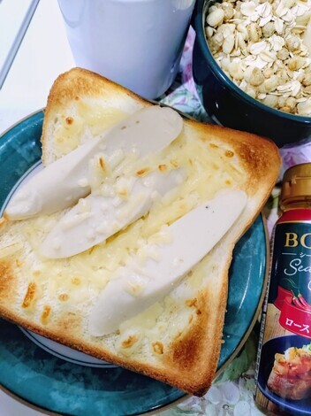 魚肉ソーセージトーストにガーリックオイルを