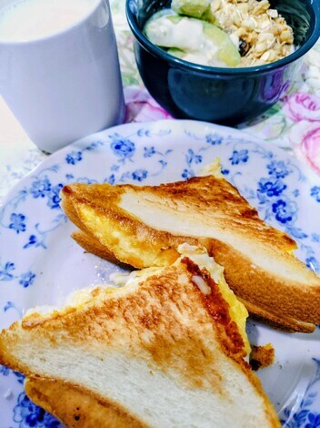 オリーブオイルでたまごとチーズをフライパンでトースト