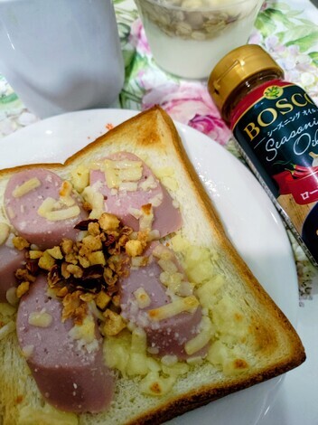 トーストにガーリックオイルを