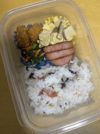 炒飯は腐りやすいので、ベーコン卵ネギのみ使い保冷も入れました🫡