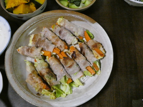 今夜は、娘が人参とキャベツの肉巻きをオリーブオイルを使って焼いてくれました😋