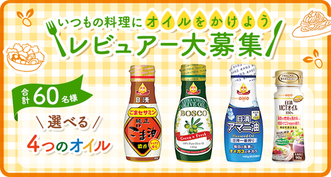 いつもの料理にオイルをかけよう!合計60名様レビュアー大募集