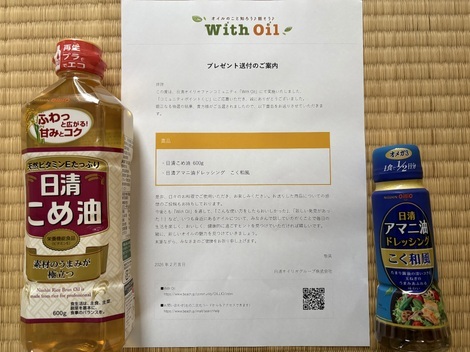 ポイントくじに当選してこめ油とドレッシングが届きました