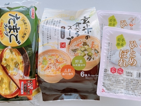 パックご飯と即席スープに、コンビニのサラダかお惣菜(300円くらいで買えたはず)をプラスすれば、お腹も満足だし、少しは節約になると思って常備しています。