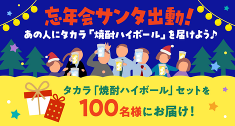 みなさんも、周りの『タカラ「焼酎ハイボール」』未体験の方に、「忘年会サンタ」となって、『タカラ「焼酎ハイボール」』を届けてみませんか?