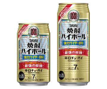 <強烈サイダー割り>は、強炭酸が特長の『タカラ「焼酎ハイボール」』の中で、最も強い炭酸が楽しめる「強烈シリーズ」の原点となるフレーバー。