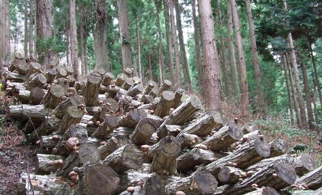 愛も足かけ20年相棒がチェーン艘で木を切って菌打って販売。