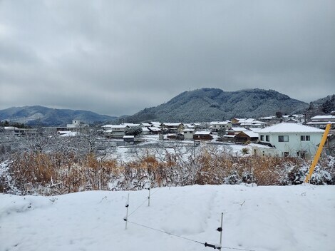 昨日2日から少しづつ雪が増えて畑や山は白くなり始め、今朝は3・くらいくらい積もっていて真っ白です。