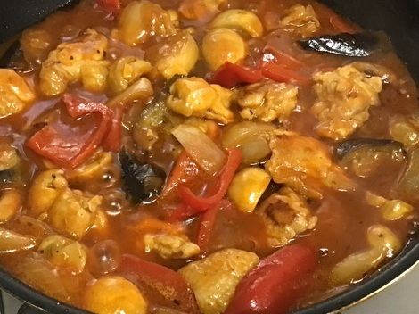 鶏もも ナス 玉ねぎ 赤ピーマン マッシュルームのトマト煮