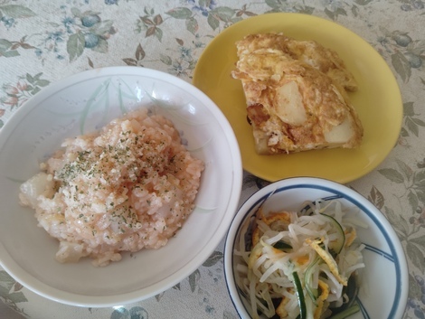 大根と白菜のリゾット、スペイン風オムレツ、大根の酢の物。