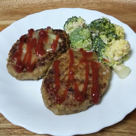 「今日はハンバーグ!子どもも大好きなので、いつも完食してくれます。栄養のことも考えて、玉ねぎ・ナス・レンコンと野菜をたっぷり入れています。ミキサーにかければ野菜嫌いの子どもも食べてくれますよ♪」