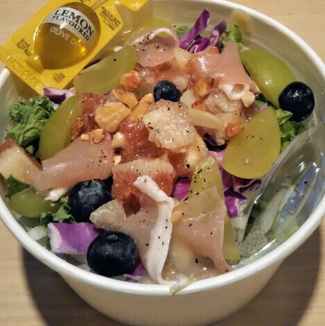 昨日の晩ごはんは、生ハムに無花果とシャインマスカットを使った野菜サラダ、