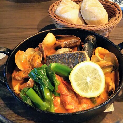 ずいぶん久し振りの友達とのランチ☀️🍴は、地元の食材を使った野菜サラダとブイヤベースを食べました♪