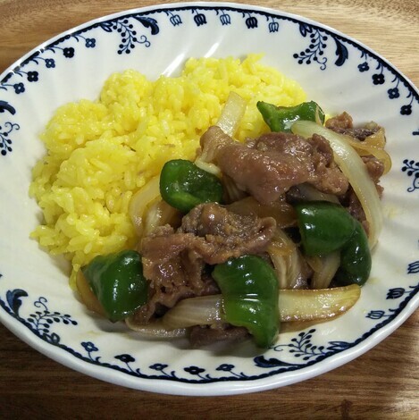 生姜焼きには、玉葱とカットして冷凍してあったピーマンも入れました♪