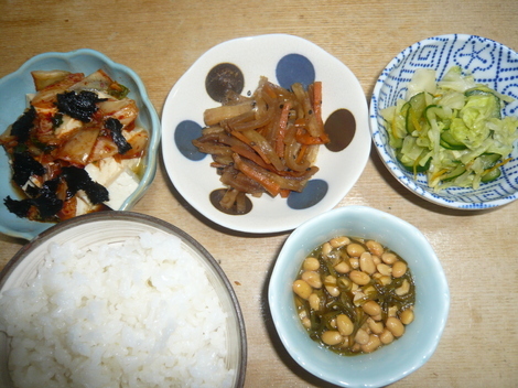 ■今日のおうちごはんは何?写真があればぜひシェアしてね!キムチ豆腐、めかぶ納豆、金平、一夜ゆず漬物、ご飯