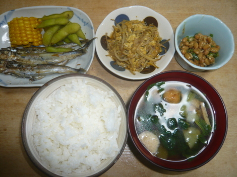 ■今日のおうちごはんは何?写真があればぜひシェアしてね!オクラ納豆、鶏しんじょ青梗菜の汁、もやし玉子のオイスターソース炒め、シシャモとうもろこし枝豆、ご飯