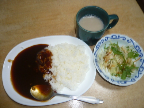 ■今日のおうちごはんは何?写真があればぜひシェアしてね!ハヤシライス、サラダ、豆乳ティー