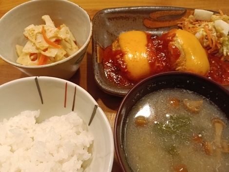 「今日はハンバーグ!子どもも大好きなので、いつも完食してくれます。栄養のことも考えて、玉ねぎ・ナス・レンコンと野菜をたっぷり入れています。ミキサーにかければ野菜嫌いの子どもも食べてくれますよ♪」