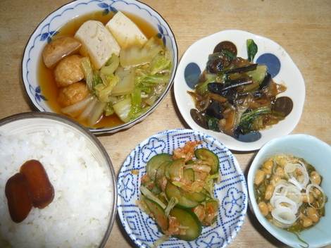 ■今日のおうちごはんは何?写真があればぜひシェアしてね!つくね豆腐白菜の煮物、めかぶ納豆、胡瓜キムチ、マス青梗菜みそ炒め、からすみご飯