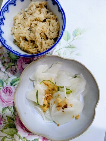 シークワーサーの大根の漬物を作りホタテの炊き込みごはん