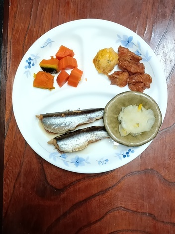 鰯の煮付け、南瓜・人参煮、海老団子・ごぼう揚げ煮、ゆず大根