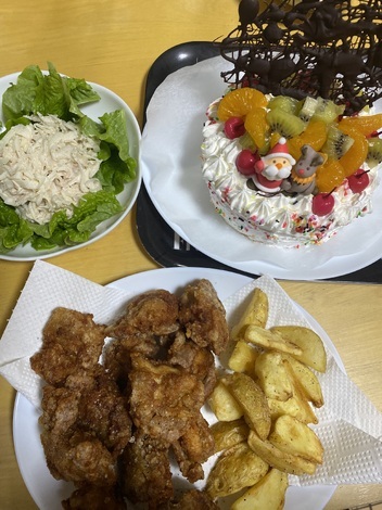 から揚げ、新じゃがポテトフライ🍟ケーキ🎂