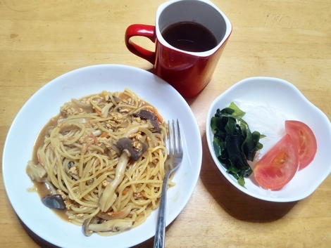 カレースパゲッティー、大根サラダ