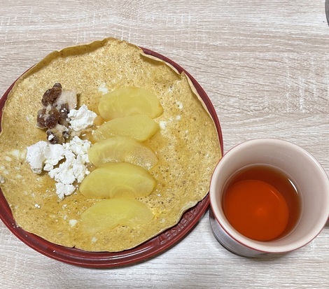オートミールパン、酒粕レーズン、クリームチーズ、むしりんご、はちみつ