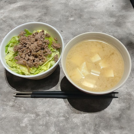 ひき肉に舞茸が入った肉味噌丼
