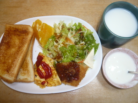 ■今日のおうちごはんは何?写真があればぜひシェアしてね!オレンジ、サラダ、チーズ、魚フライ、オムレツ、トースト、ヨーグルト、ミルク