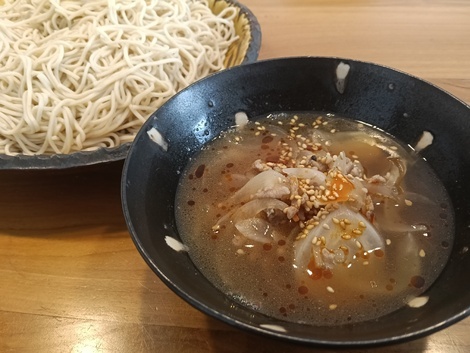 新玉ねぎ、ひき肉を炒めて具だくさんの蕎麦汁を作りました♪