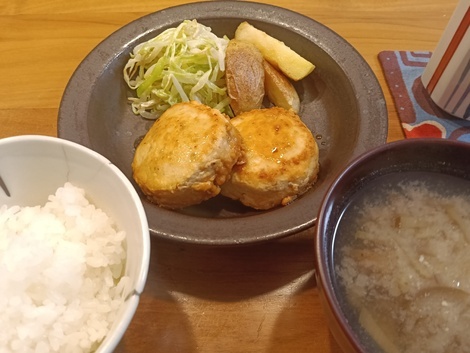 「今日はハンバーグ!子どもも大好きなので、いつも完食してくれます。栄養のことも考えて、玉ねぎ・ナス・レンコンと野菜をたっぷり入れています。ミキサーにかければ野菜嫌いの子どもも食べてくれますよ♪」