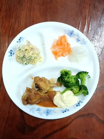 手羽元の照り焼き、サラダ・サラダ、酢の物・酢の物