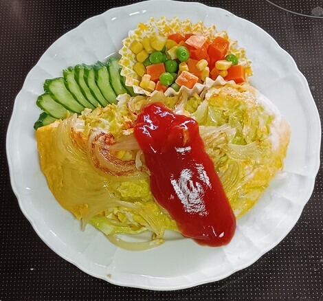 新玉ねぎと春キャベツのオムレツです。