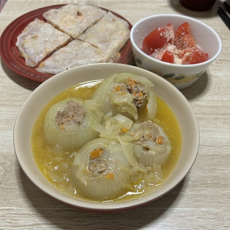 新玉ねぎの肉詰めコンソメ煮