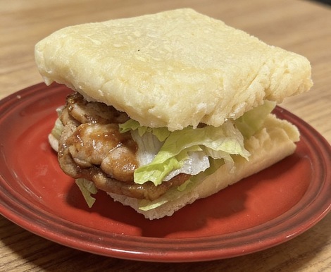 米粉✖︎男前豆腐で米粉パン作りロース焼肉サンドにしました作り置きのきんぴらもはさんだら美味しかったです