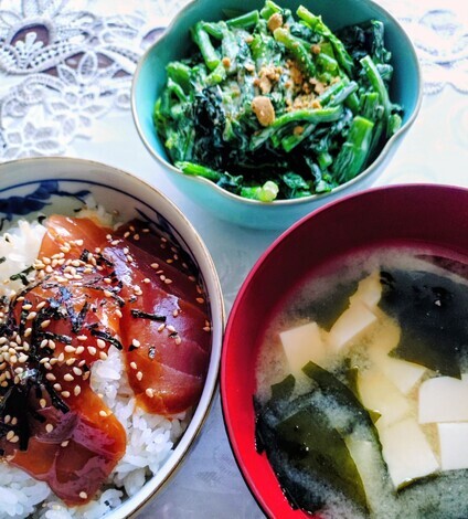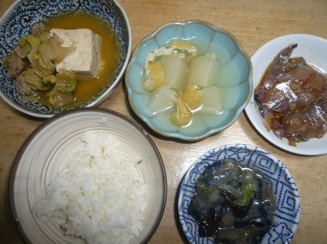 ほうれん草のおひたしと、ナスの揚げびたしも食べました。