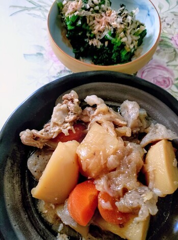 「今日のおうちごはんはあっさりめの和食メニューです!子どもに合わせていたら最近こってり気味のメニューになっていたのですが、パパの体が心配なので、旬の野菜の煮物を中心に。旬野菜を使った料理は、子どもよりパパに好評です^^」