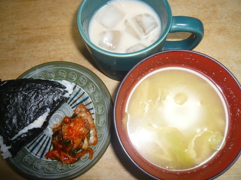 ■今日のおうちごはんは何?写真があればぜひシェアしてね!おにぎり、キムチ、みそ汁、豆乳ティー
