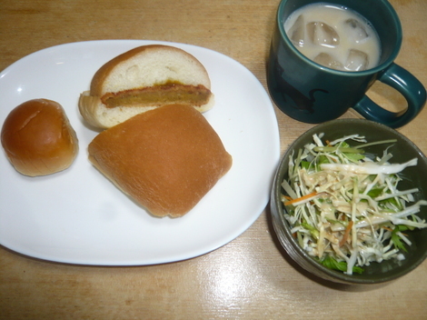 ■今日のおうちごはんは何?写真があればぜひシェアしてね!メンチパン、ミニアンパン、サラダ、豆乳ティー