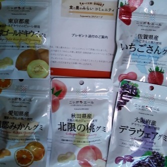 「みんなで語ろう!わたしの推し直売所」キャンペーンにて当選♪JAさんのニッポンエールご当地グミセットをGETです♪さっそくデラウェアをいただきました( *´艸`)中にジューシーなものが💗上品なおいしさもありました。お店に置いてほしいなぁ・・・(チラッありがとうございました!!