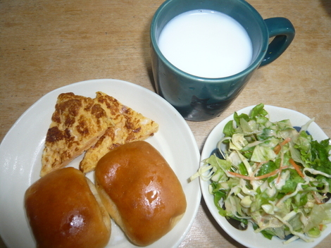 ■今日のおうちごはんは何?写真があればぜひシェアしてね!ツナパンスペインオムレツ、サラダ、牛乳