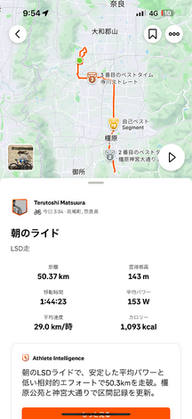 昨日と違い完全に低強度に徹し、ベースレベルの強化を図ります。