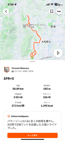 今朝は中強度のトレーニングを中心に50kmほどロードバイクで走りました。
