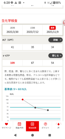 日曜日に献血 へ行きました。 血液検査の結果が来ました。 γ- GTB の値が ものの見事に下がっています。 シックスパッドで本格的にトレーニングを始めたのは5月。 2ヶ月後の数値は 標準ギリギリいっぱいのとこでしたが 6ヶ月後はなんと超有料な数字が出ています。 まさにシックスパッド 効果 だと思います 習慣が変われば 数値が変わる🤣