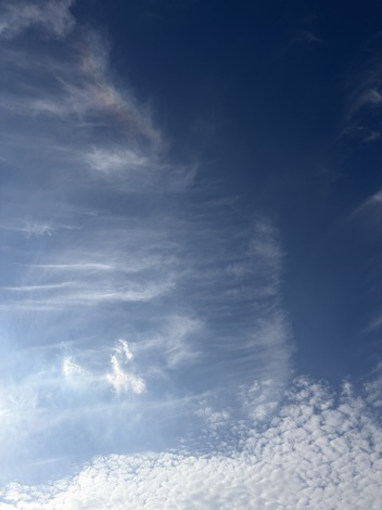 ところで、今日は空が綺麗すぎて、買い物の行き帰り、自転車を何度も止めて空の写真を、気づいたら12枚も撮っていました。せっかくなので、彩雲が写っている写真を投稿します♪
