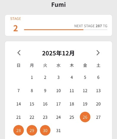 最後に、アプリを使い始めてからのカレンダー添付します。