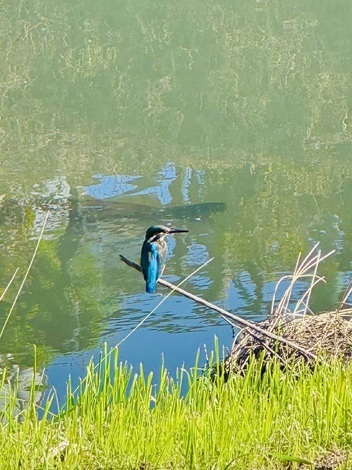 いつも川沿いをウォーキングするのですが、ここにカワセミのつがいが住み着いていて、たま〜にですが見かけることができます。