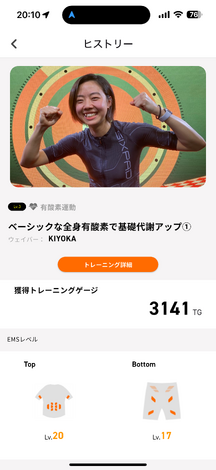 帰宅後はパワースーツを着て、KIYOKAさんの有酸素メニューを行いました。